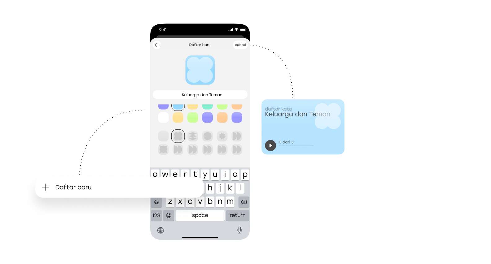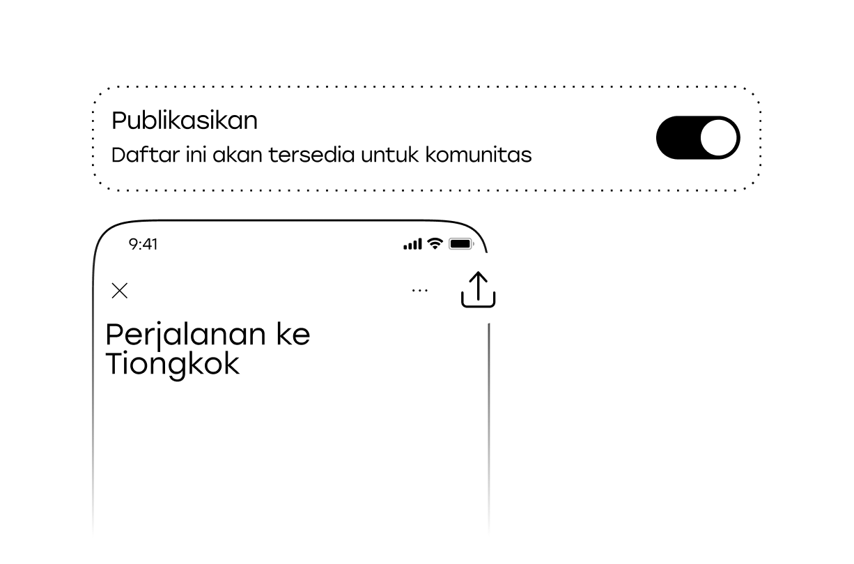 Kamu bisa bagikan daftar katamu langsung atau buat publik untuk seluruh Komunitas.