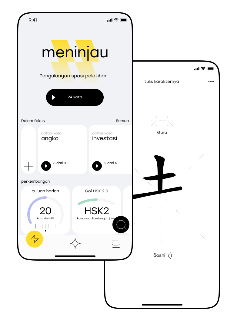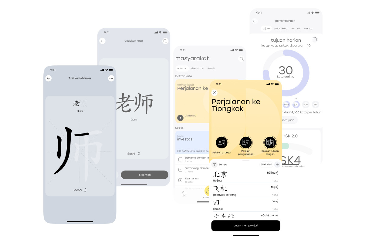 Kami buat aplikasi untuk belajar kata dan karakter di bahasa Mandarin. Ini akan menyingkat waktumu dan membantumu belajar lebih efektif.
