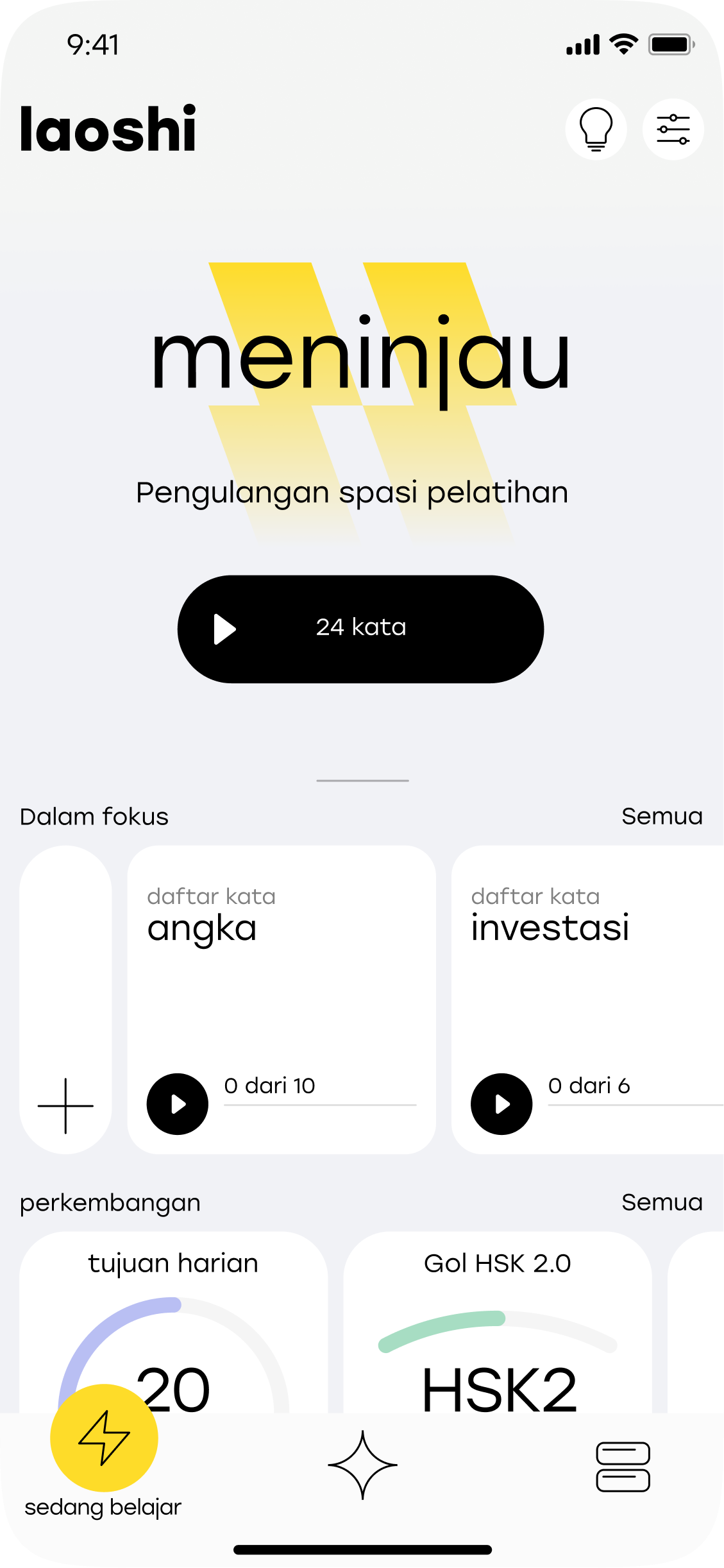 Di Laoshi, kamu bisa buat daftar katamu sendiri dan bagikan ke temanmu dengan mudah. Pakai aplikasi ini sebagai kamus saat kamu belajar.