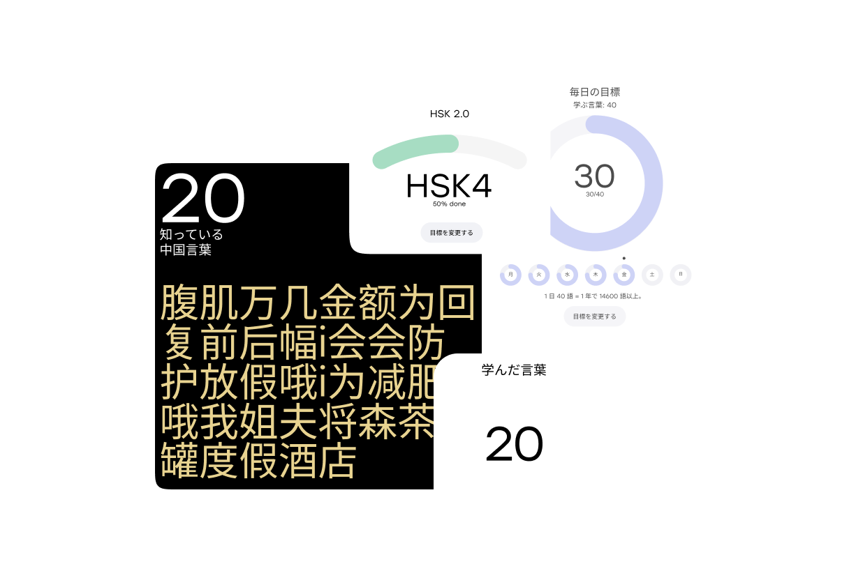 達成したいHSKレベルや、毎日学習したい単語の数を選択してください。