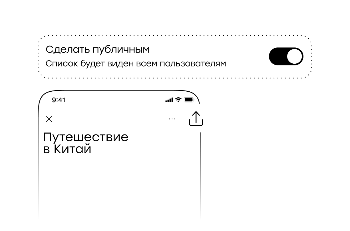 Можно поделиться списком напрямую или сделать его доступным для всего Сообщества.