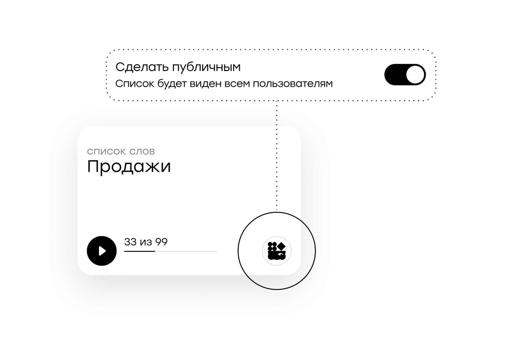 Создавай списки слов, отправляй их своим ученикам и делись в Сообществе.