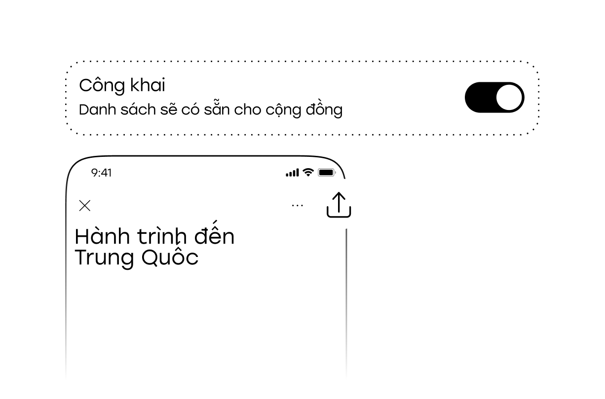 Bạn chia sẻ danh sách từ trực tiếp hoặc bằng cách công khai với Cộng đồng.